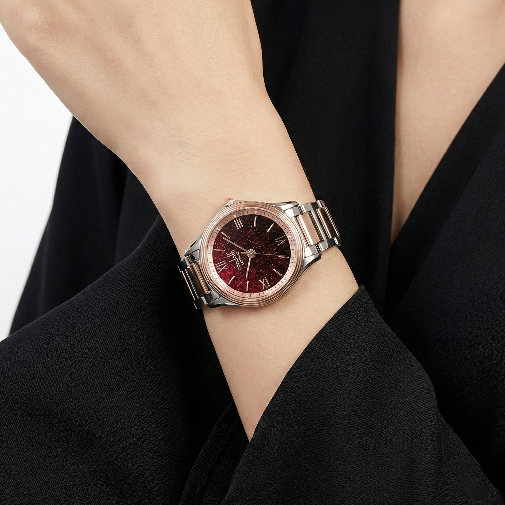 Jam tangan mewah dengan desain yang anggun, terinspirasi dari kelembutan dan kekuatan bunga anggrek. Pilihan sempurna untuk melengkapi busana formal maupun momen spesial Anda dengan kemilau yang elegan